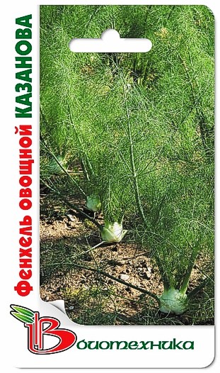 Семена фенхеля "Казанова" (Kazanova) высевают рядовым способом с междурядьями 45 см. Сорт среднего срока созревания. Период от появления первых всходов до начала сбора урожая составляет 50-60 дней. Высота растения 70 см. Листья ажурные, перистые. Черешки у основания расширены и утолщены, в результате образуется бульбовидный стеблеплод массой 100-250 грамм. Культуру необходимо время от времени окучивать. Срез зелени можно проводить, когда стеблеплод станет диаметром 8-10 см. В пищу используют все части растения: листья, стебли, основания черешков листьев, корни, семена.