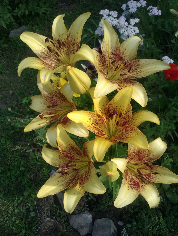 Луковицы Лилии азиатской Танго Голден Браун (Lilium asiatic Tango Golden Brown) отлично подойдёт любителям цветового разнообразия. Сорт отличается крупными цветками с классической звездчатой формой. Обращает на себя внимание пестрая расцветка, напоминающая перья экзотической птицы. На лепестках желтого цвета густо рассыпан бордовый крап, кайма у лепестков почти медного цвета. На одном стебле (высотой около метра), распускается от 5 до 7 бутонов одновременно. Голден Браун радует обильным цветением, быстрым размножением и неприхотливостью.