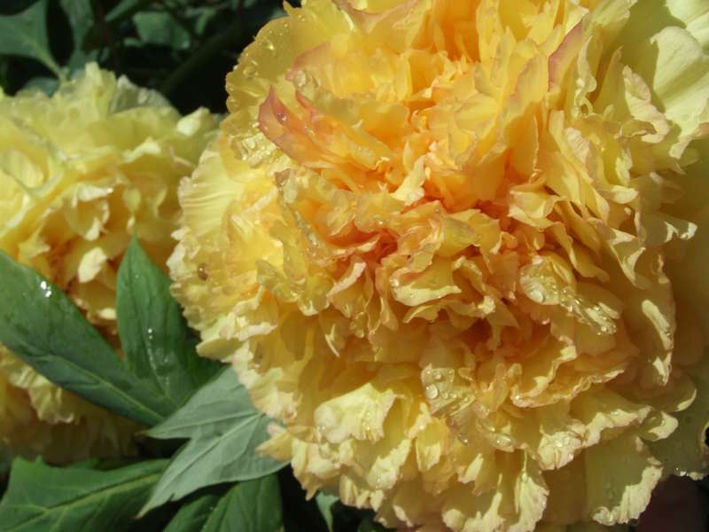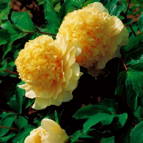 Саженцы пиона древовидного Яо'с Йеллоу (Paeonia Suffruticosa Yao huang) придутся по душе любителям цветков нежного пастельного цвета. Кустарник высокий, достигает до 2 метров в высоту. Стебли плотно усыпаны яркими зелеными листьями. Цветение длится с конца весены до начала летнего периода. На одном кусте может размещаться от 30 до 60 цветков. Цветки крупные - 20-25 сантиметров в диаметре. Махровый цветок имеет очень красивую форму - более мелкие кучерявые лепестки перемежаются с тычинками и окружены по краю большими, развернутыми прямыми лепестками. Сорт отличается очень насыщенным ароматом. Предпочитает солнечные участки или полутень. Грунт должен быть богатым, хорошо дренированным.