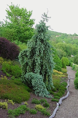 Веточки имеют голубовато-зелёный цвет, а молодые побеги появляются из заострённых почек чисто голубыми. Дерево ка и ели использую для украшения небольших рощ. Оно не боится холода, хотя молодые и только высаженные ростки лучше укрывать на зиму. Дерево не любит плотную почву.