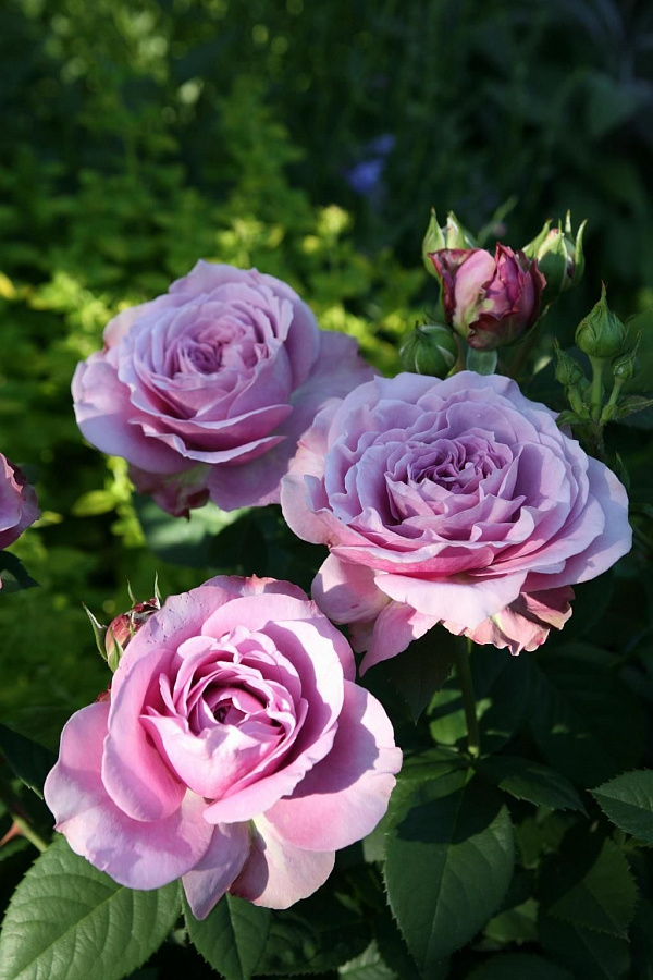 Роза чайно-гибридная Blue Moon - это великолепное растение с изысканным сиреневым цветком диаметром 10-11 см. Ее ствол устойчивый, высотой до 300-400 см, с листьями формы 2. Это растение предпочитает полутень и обогащенные почвы, идеально подходит для групповых посадок. Blue Moon цветет во 2, 4 и 6 месяце, радуя глаз своим нежным оттенком.