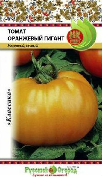 Семена томата (Помидора) Оранжевый Гигант (Solanum lycopersicum Oranzhevyj Gigant) приносят хороший урожай плодов яркого оранжевого цвета с повышенным содержанием β-каротина. Куст вырастает до 130 сантиметров в тепличных условиях и до 80 сантиметров на открытых участках. Плоды – крупные (250-500 грамм), яркого оранжевого цвета. Мякоть – мясистая, сладкая, кожица – плотная, не трескается. Хорошая, стабильная урожайность. При благоприятных погодных условиях и хорошем уходе с 1 куста можно собрать 5-9 килограмм томатов. Сорт хорошо растет и развивается на легких плодородных почвах, в вегетационный период необходима подкормка.